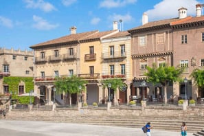 L’ensemble du Poble Espanyol, situé sur la montagne de Montjuïc occupe un espace de 49 000 m² et abrite 117 bâtiments à échelle réelle, représentatifs de 15 des communautés autonomes espagnoles. Ces constructions forment un véritable village, avec ses rues, ses maisons, ses places, théâtres, restaurants et ateliers artisanaux. Le Poble Espanyol vous offre également la possibilité de visiter le musée Fran Daurel, avec une collection privée d’art contemporain comprenant des œuvres de Miró, Dalí et Picasso, ainsi que de profiter d’établissements de loisirs, tels que des discothèques, un théâtre ou des «tablaos flamencos».
