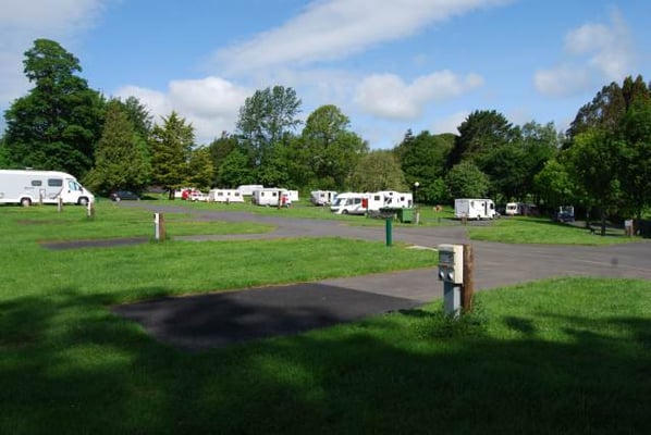 Tous les emplacements pour véhicules de tourisme sur le site principal sont recouverts de goudron avec des points de connexion électriques et la plupart ont des zones gazonnées à proximité adaptées aux auvents. Il y a des toilettes séparées pour les hommes et les femmes, des douches et des installations de lavage à proximité (accessibles en fauteuil roulant), de l'eau fraîche, une salle de lavage de la vaisselle et un point d'élimination des toilettes chimiques.