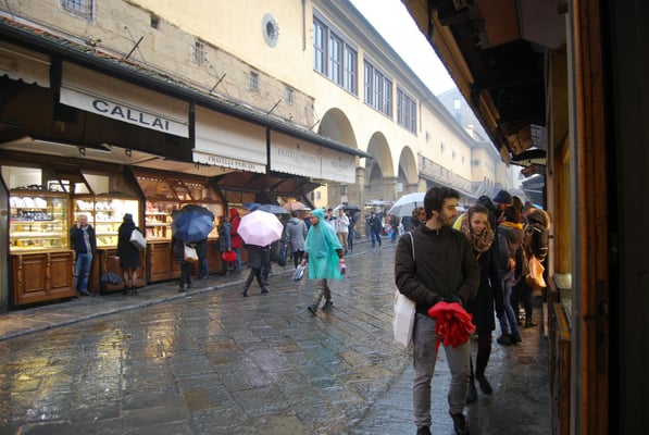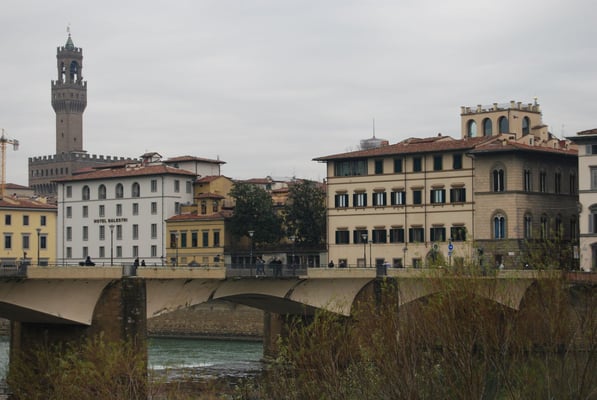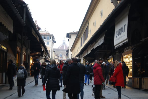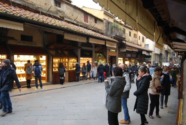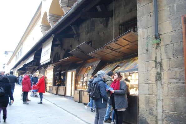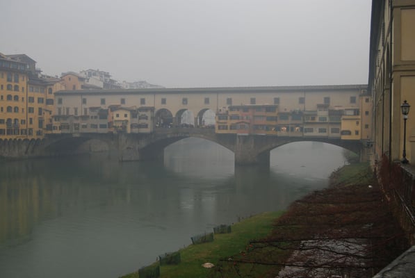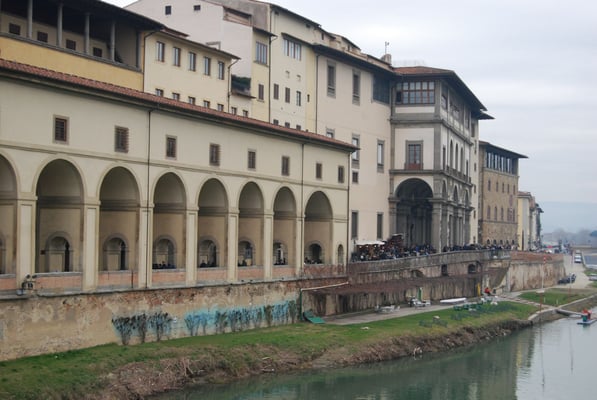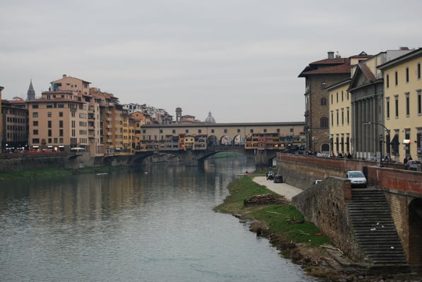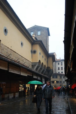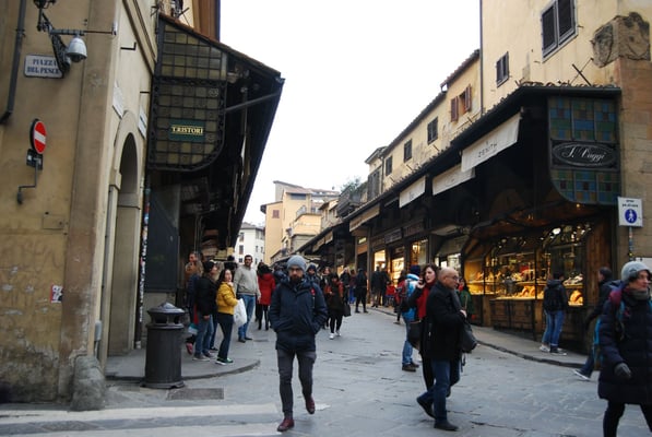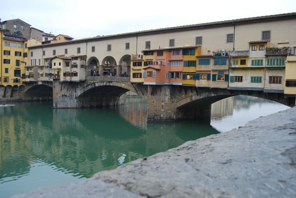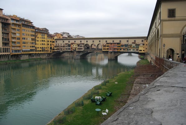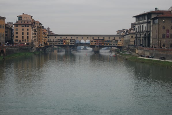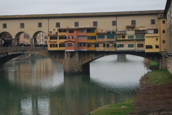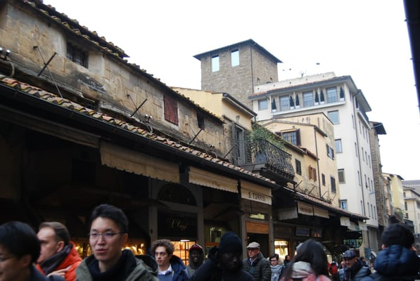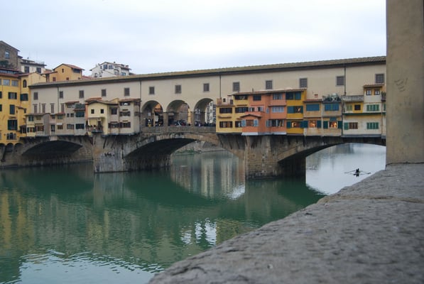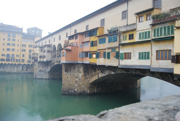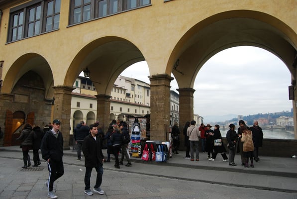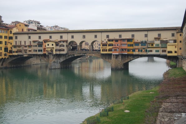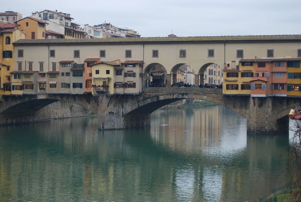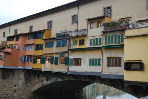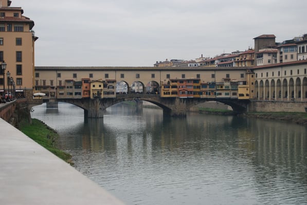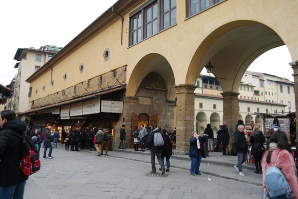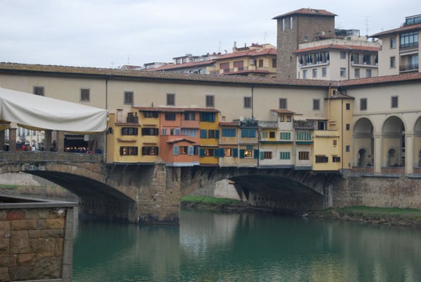 Le Ponte Vecchio est un des symboles de la ville de Florence. Il traverse l’Arno dans son point le plus étroit. La première construction en bois remonte à l'époque romaine. Détruit en 1333 par le fleuve, il fut reconstruit en pierre en 1345. Sa particularité réside dans le fait qu’il possède des boutiques (principalement des bijouteries) sur tout son long. Le corridor de Vasari surplombe une des deux rangées de boutiques et permettait aux Médicis de rejoindre le palais Pitti depuis le Palazzo Vecchio et les Offices sans les dangers de la rue.