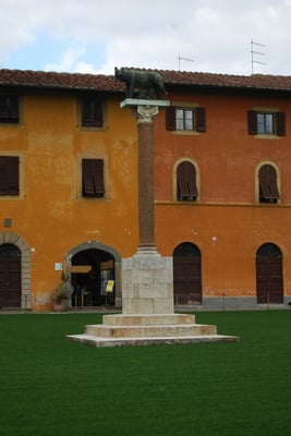 · Le Camposanto est le cimetière monumental. Il se compose comme un vaste cloître étiré en longueur avec des fenêtres gothiques à quatre baies. Commencé en 1277, il ne fut achevé que deux siècles plus tard. Le centre contient de la Terre sainte ramenée par les croisés. Les nombreuses fresques qui le décoraient ont été endommagées pendant les bombardements de la Seconde Guerre mondiale. Certaines ont été sauvées et restaurées, comme le Triomphe de la Mort et leurs dessins préparatoires, détachés, sont exposés dans le museo delle sinopie situé en face.