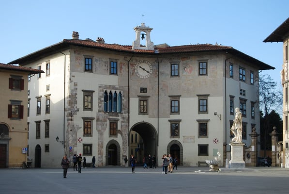 (La Place des Cavaliers) était le coeur politique de Pise au Moyen Âge. Elle a été profondément remaniée sous l'impulsion de Cosme Ier de Médicis, qui a chargé son célèbre architecte Vasari de construire des édifices pour accueillir l'ordre des Chevaliers de Saint-Etienne (cavalieri di Santo Stefano). Elle accueille le palazzo della Carovana, le palazzo dell'Orologio, l'église Santo Stefano ou encore le collegio Puteano.