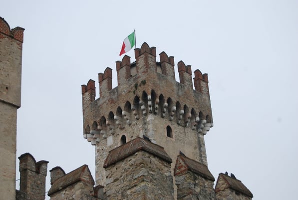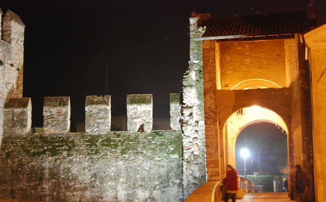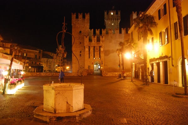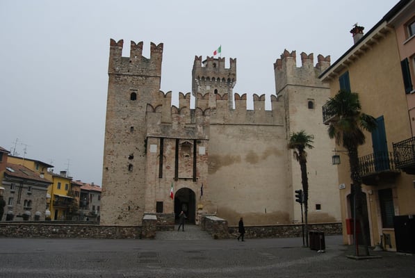 Le château de Scaligero (XIIIe siècle). Il s’agit d’un rare exemple de fortification portuaire médiévale, qui a été utilisée par la flotte Scaliger. La construction de ce complexe a commencé en 1277 par Mastino della Scala. Il présente les merlons typiques de queue d’hirondelle ghibelline et les murs-rideaux (avec trois tours d’angle) en galets alternant avec deux bandes horizontales de cours de briques. Les murs à l’intérieur ont été finis avec du plâtre avec des graffitis, simulant des blocs de pierre.