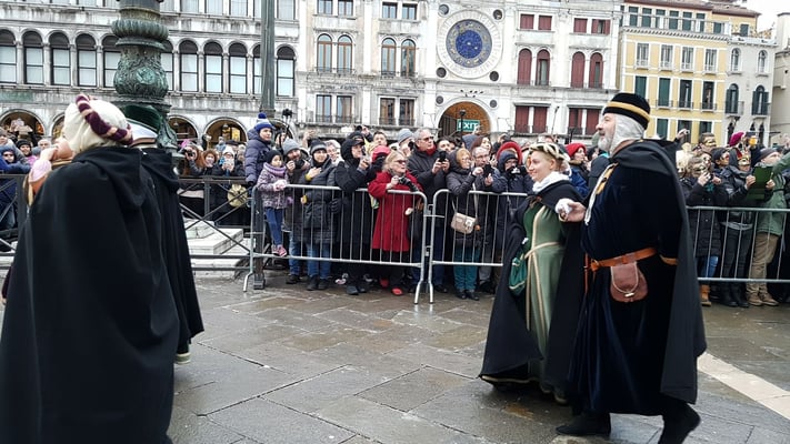 En 2018 le Carnaval de Venise se déroulera du 3 février au 13 février 2018. Bien qu'officiellement le carnaval ouvre dès le 27 janvier il ne s'agit que d'un prologue avec quelques animations les 27 et 28 janvier, surtout suivies par des Vénitiens. Durant cette période du prologue vous ne croiserez pas de gens costumés. Le carnaval tel que vous l'imaginez, débutera le 3 février avec le traditionnel défilé des Marie.