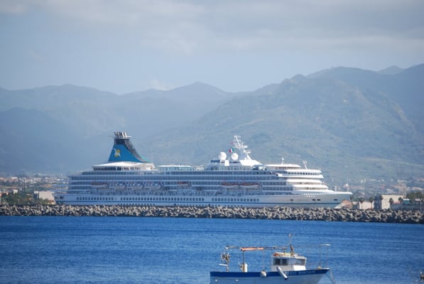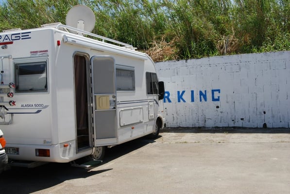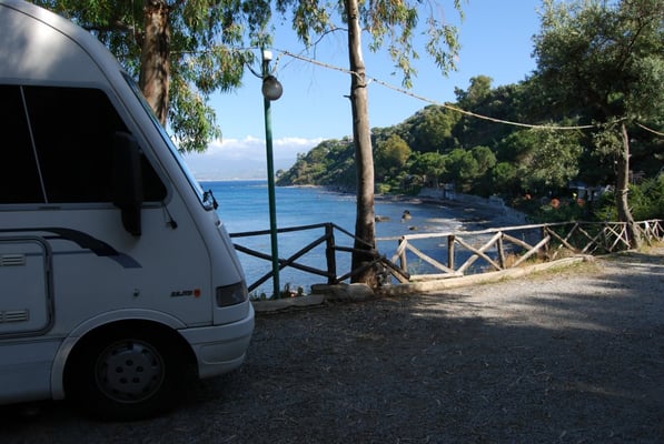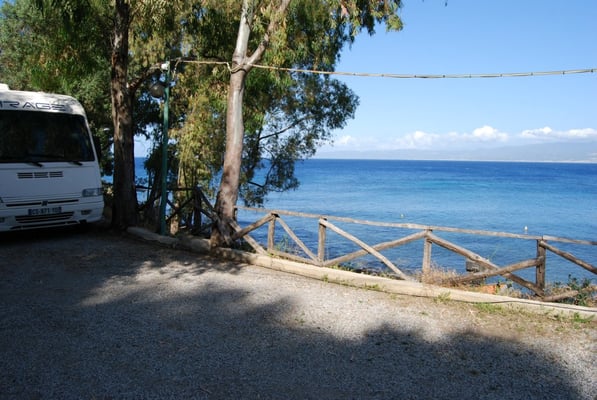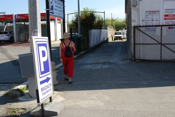 Mais il y a toujours un parking et visiblement nous étions les premiers camping caristes à y venir… Le jeune qui tient l’établissement s’est mis en quatre afin de comprendre ce que l’on voulait et finalement par téléphone interposé nous avons communiqué avec une sympathique Suissesse- Sicilienne ou Sicilienne- Suissesse hôtesse de la compagnie de bateau qui fait la croisière et nous nous y sommes installés cool pour 2 nuits… je vous dirai après le coût …. L'ancien était à 20 € maintenant c'est 10 € + 3 € pour faire le plein d'eau... Maintenant c'est Parking Mignon, allez y de ma part....