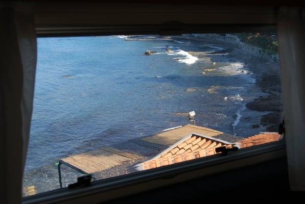 Direction le camping 14 € la nuit … ACSI sans même figurer dans le guide !!! vue paradisiaque depuis le camping car…. et bruit de la mer pour nous bercer !