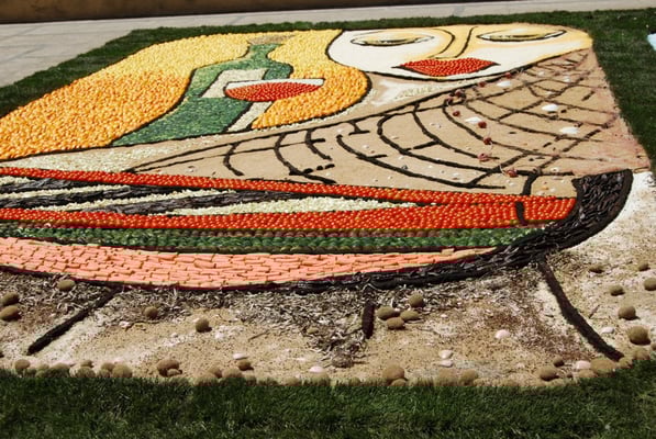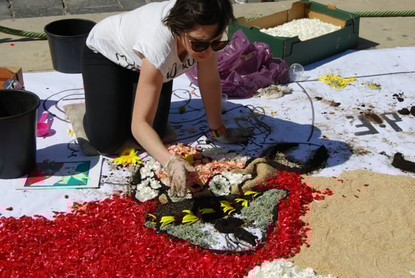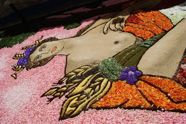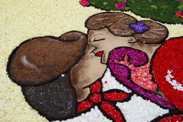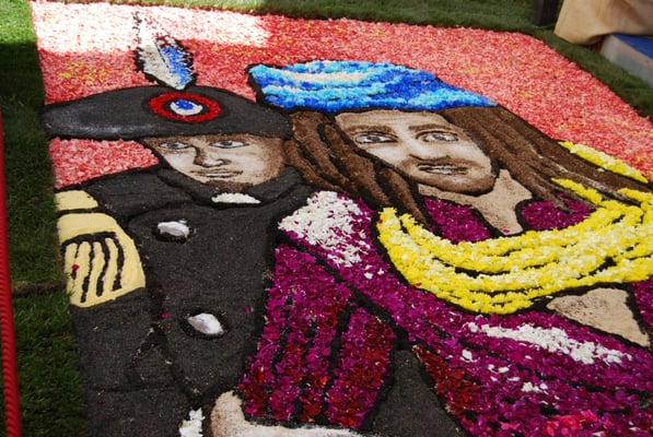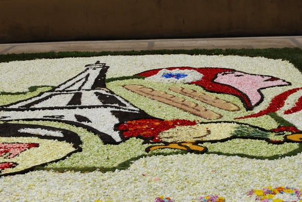 Heureusement que j’ai pris les photos des tapis de fleurs ce matin car à cause d’un vent terrible la plupart de ces œuvres étaient fortement abîmées.