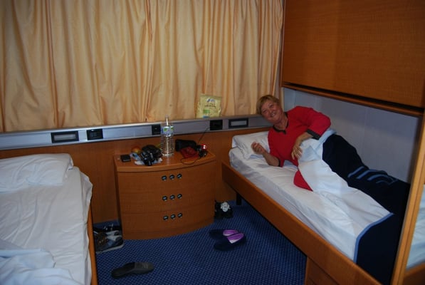 Comme seule distraction : promenade dans les coursives, au bar, petit-déjeuner et repas de midi à la cafétéria, visite de la boutique ou sur le pont…