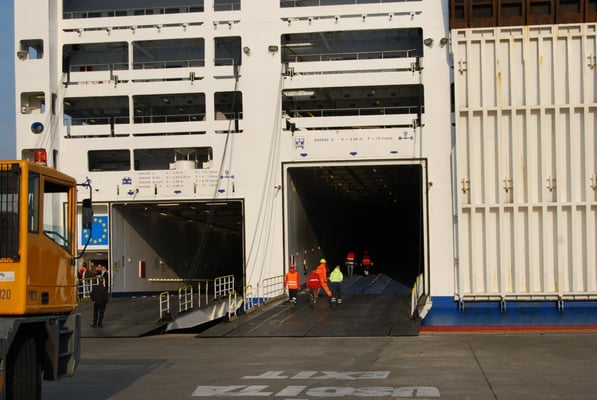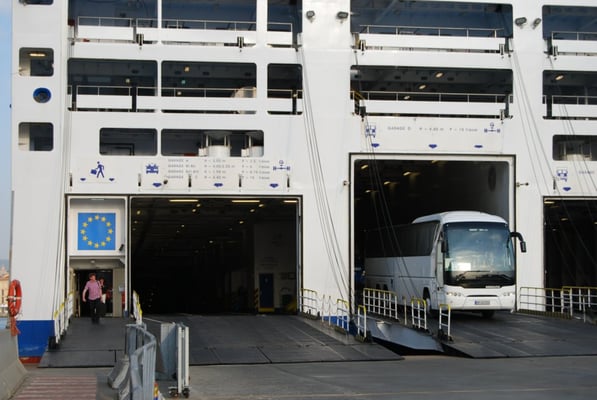 Et après une interminable attente jusqu’à 21 h, nous commençons à avancer doucement vers le ferry.