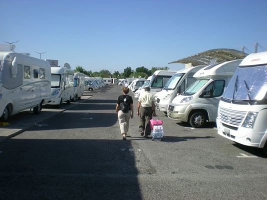 En période habituelle ce sont deux places officiellement disponible pour les camping cars mais là en arrivant surprise, nous nous trouvons en présence de plus de 200 camping cars...(Un rassemblement qui faisait le tour Lisbonne – Batalha et Porto)