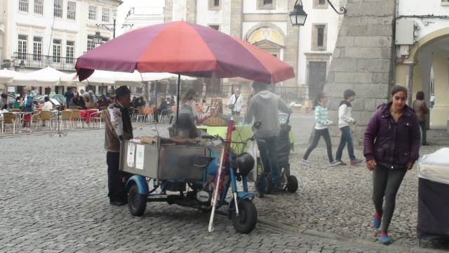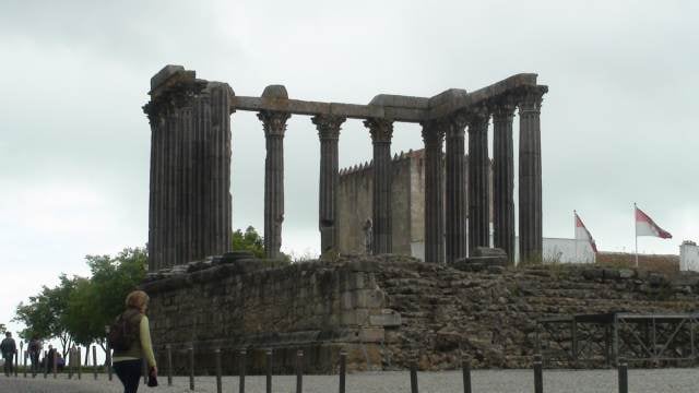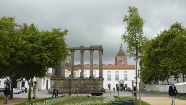 Direction Evora, capitale de l’Alantejo, perchée sur une butte dominant de vastes étendues d’oliviers et de champ de blé, construite autour d’un acropole antique qui de mon gout mérite d’être vu mais sans plus.