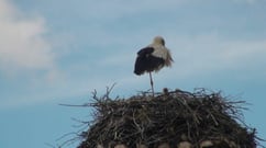 Quelques gouttes de pluie cette nuit, ce matin le village perché de Monsanto est dans la brum, puis petit à petit le soleil se lève, nous prenons la direction de Castelo de Vide où nous nous posons au bord de la retenue du barrage de Povoa, tout au long de route nous croisons des nichoirs de cigognes avec de petits oisillons dans le nid.