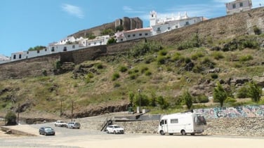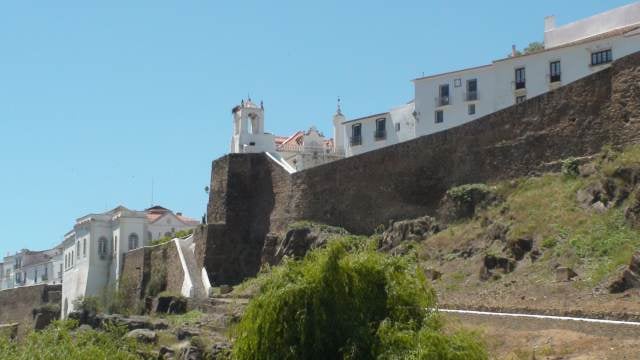 Pause repas dans une des dernières place fortes du Portugal le long de la frontière Espagnole au bord du « Rio Guadiana à Mertola…tentative du steack de veau cuit à la poële…bien mais il faut de super dents…