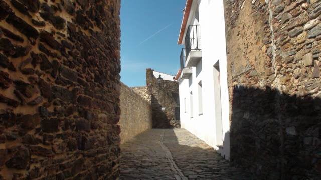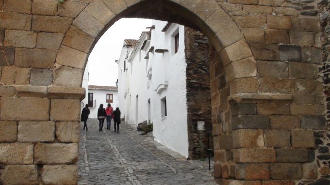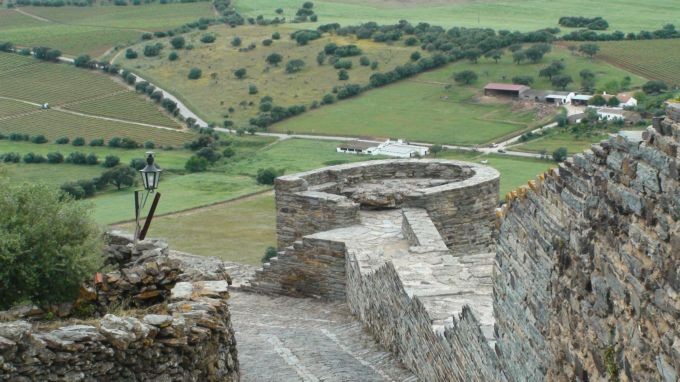 Ville fortifiée a la frontière espagnole postée sur la rive droite du fleuve Guadiana.