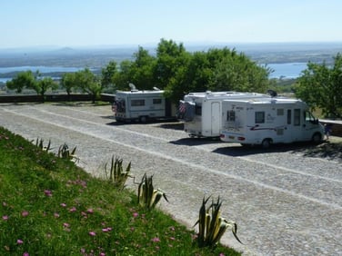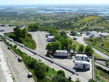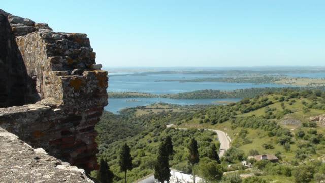 De ce nid perché on a une vue fantastique sur la campagne environnante et l’immense lac du barrage d’Alqueva, le plus grand d’Europe.