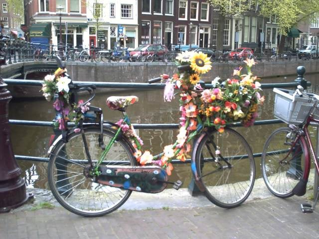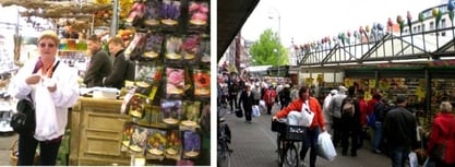 AMSTERDAM... à 5 mn à pied du camping, il y a le métro et sommes à 20 mn du centre de la ville, nous descendons à la station "Waterlooplein" afin d'emprunter les quais qui mènent au marché aux fleurs.