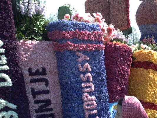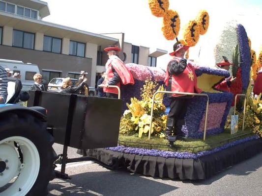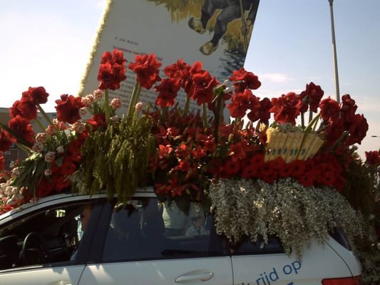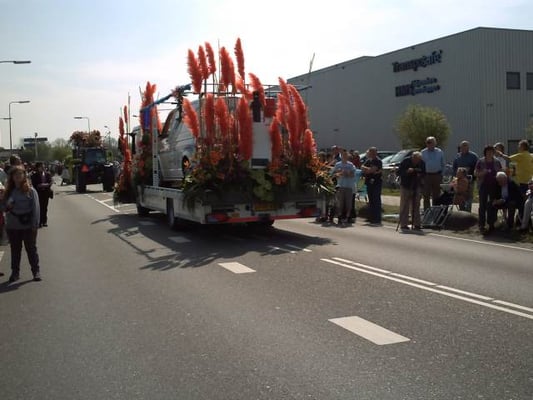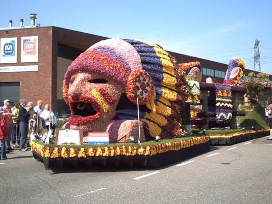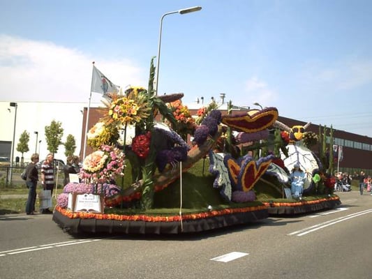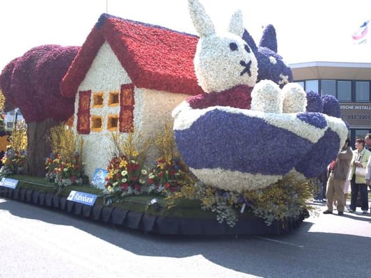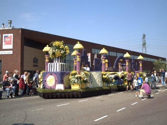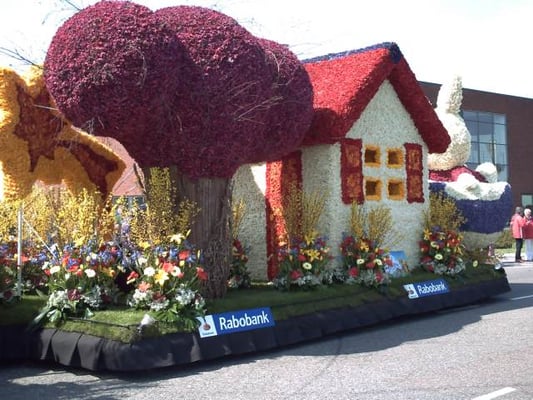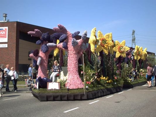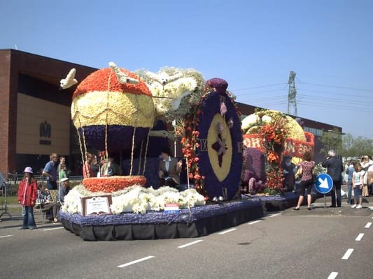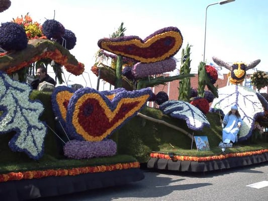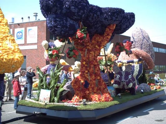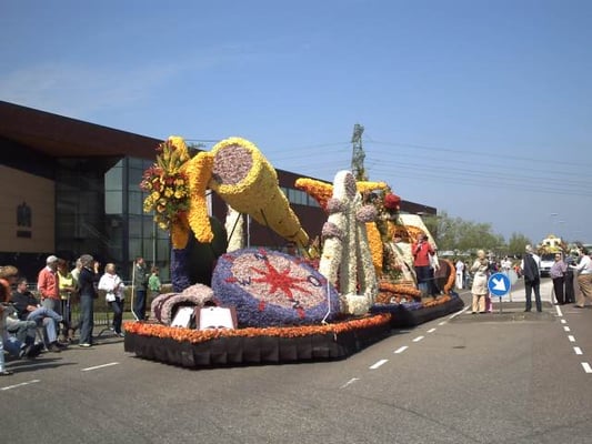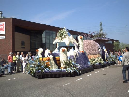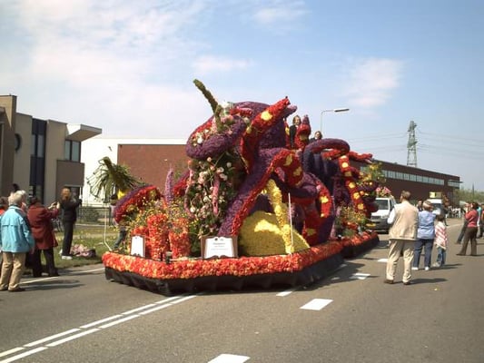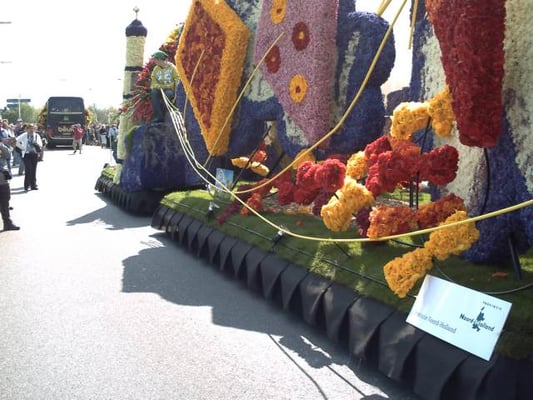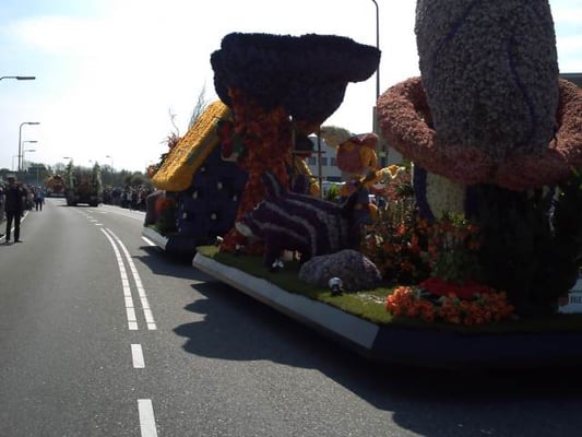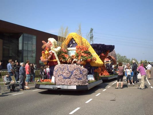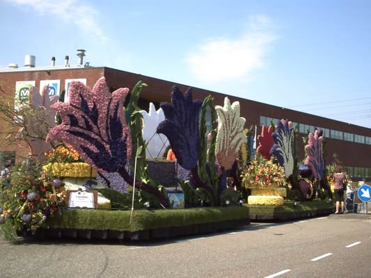 Autour de Keukenhof, capitale des bulbes et des tulipes, se tient traditionnellement fin Avril un gigantesque Corso Fleuri sur un trajet de 40 km, une cinquantaine de chars précédés par une caravane publicitaire tout aussi fleurie...