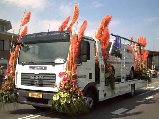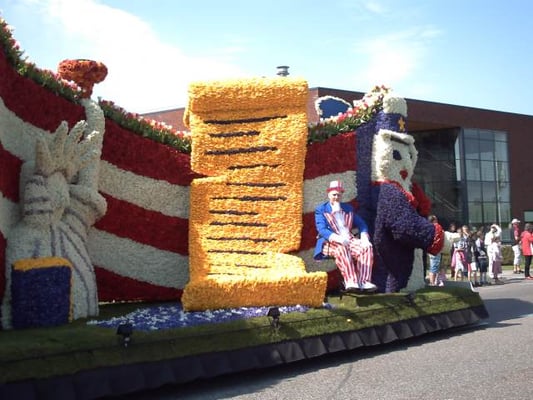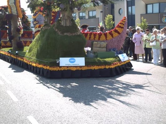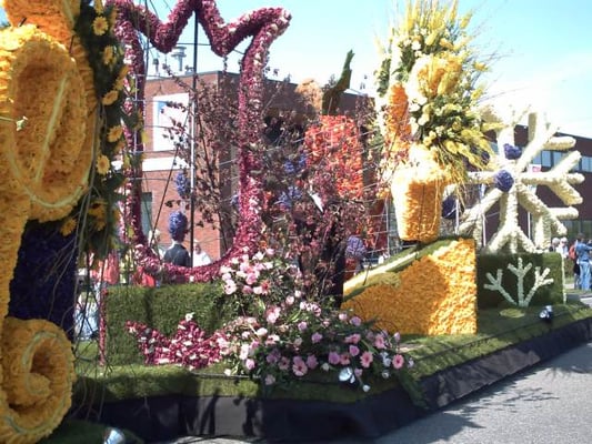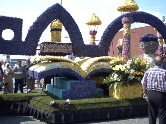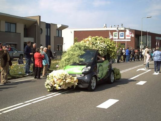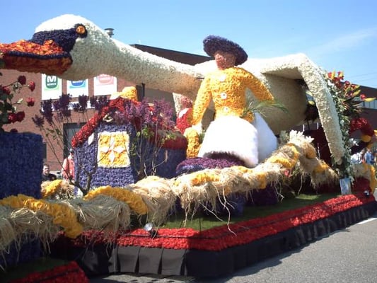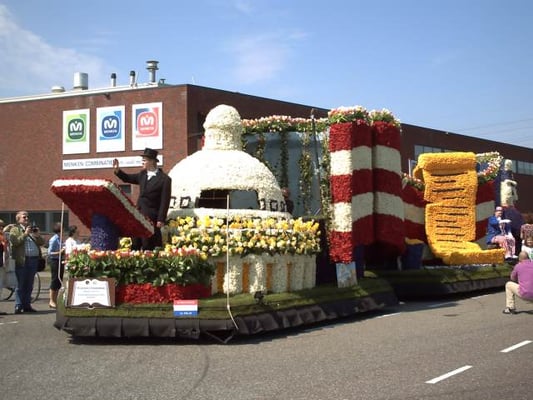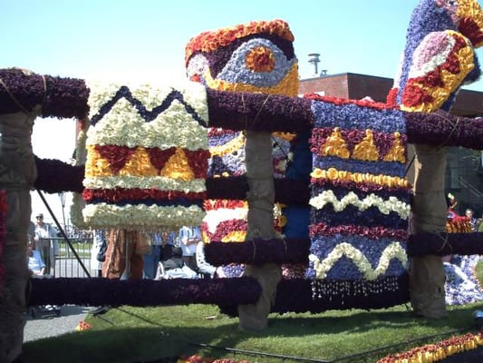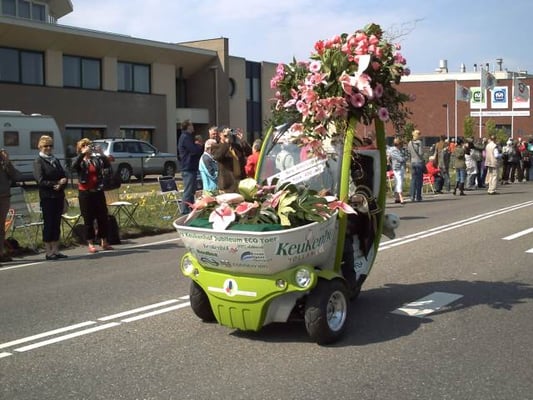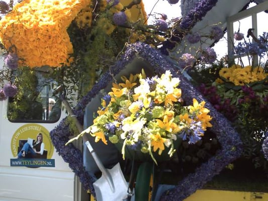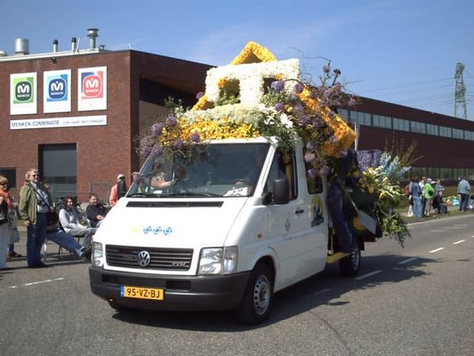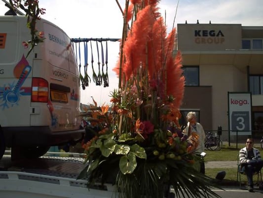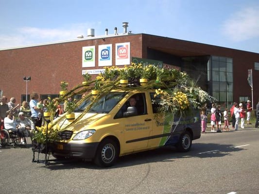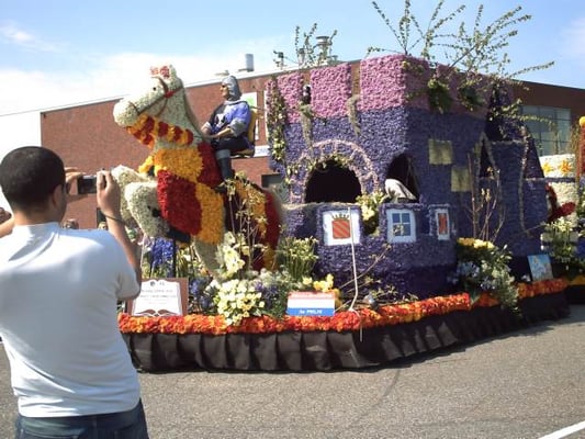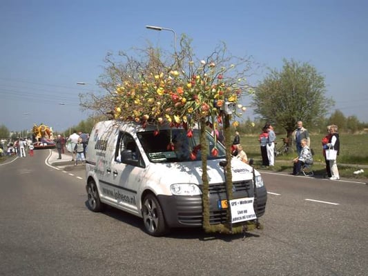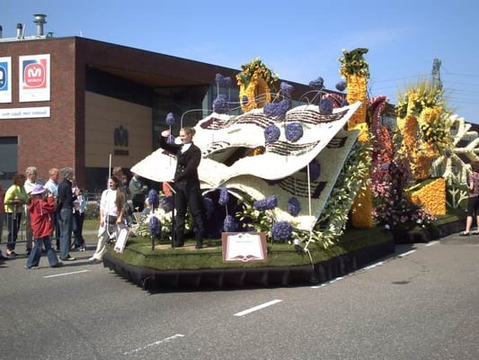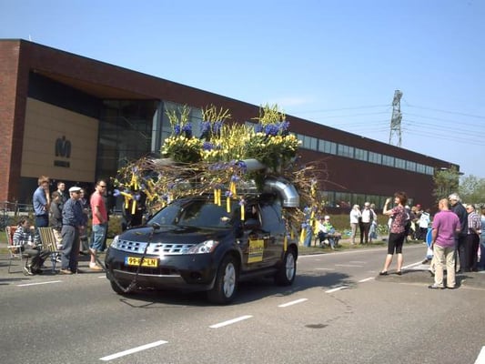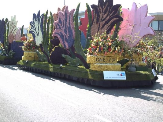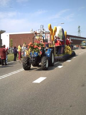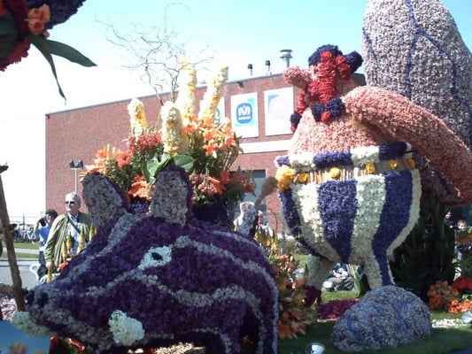 Autour de Keukenhof, capitale des bulbes et des tulipes, se tient traditionnellement fin Avril un gigantesque Corso Fleuri sur un trajet de 40 km, une cinquantaine de chars précédés par une caravane publicitaire tout aussi fleurie...
