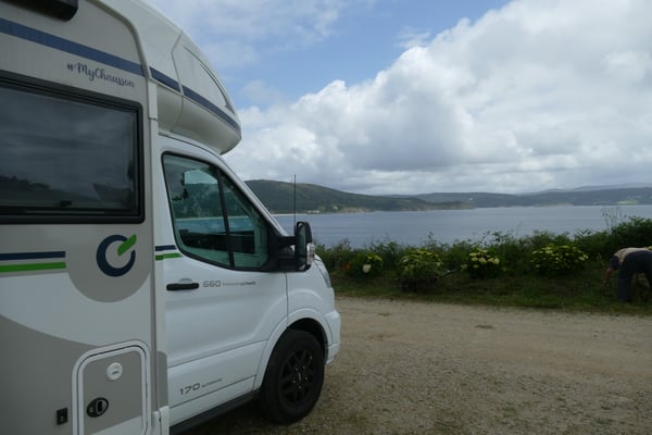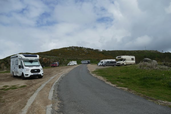 Pour ceux qui ne veulent pas payer les 13 € avec électricité de l'aire privé de Fisterra ils peuvent dormir la gratuitement mais pas besoin d'être bercer pour s'endormir le vent s'en charge !