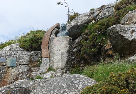 Pour arriver au phare, nous empruntons une petite route partant du village de Finisterre. Sur le trajet, nous aurons le plaisir de contempler des vues impressionnantes sur la ligne de la côte et la ría de Corcubión. Depuis les abords du phare, il est possible de s'approcher du cimetière municipal, un ouvrage novateur de l'architecte César Portela. Éloigné du concept traditionnel, ce cimetière est formé de formes cubiques situées au bord de mer. Cela vaut la peine de poursuivre l'ascension par le versant du mont Facho. Au sommet se trouvent les restes de ce qui était l'ermitage de saint Guillaume. Le point connu comme le « lit de saint Guillaume » mérite une attention spéciale. Il s'agit d'un espace creusé dans la roche du sol correspondant aux dimensions de l'être humain. D'après la tradition populaire, les femmes de la région venaient dans ce lieu pour demander la fertilité au saint.