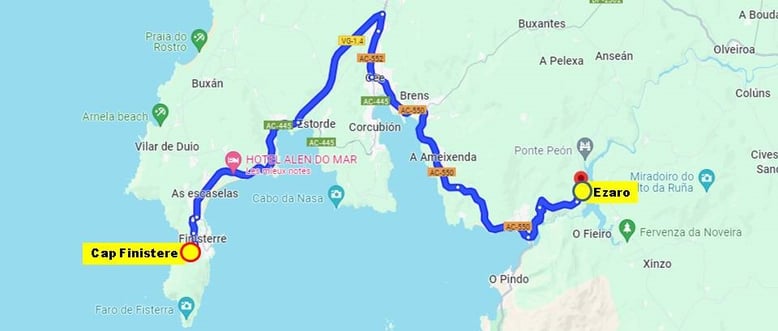 Le Camino de Fisterra est un itinéraire qui relie Saint-Jacques de Compostelle au cap Finisterre, fin des terres, bout du monde, là ou le soleil se couche.