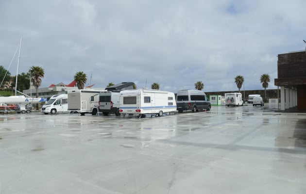 Nouvelle aire camping-car située dans une marina au-dessus d'un parking souterrain avec 25 emplacements 8m*4m, eau et vidanges, sanitaires à partager avec les marins ainsi que lave-linge et sèche-linge. Vue sur le port, nuit calme et réveil au cri des mouettes. Seulement une dizaine de campers pour cette fin août, il faut dire que le tarif est prohibitif.