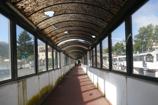 Le niveau inférieur sert pour le passage des voitures. Les piétons ont accès aux deux niveaux.
