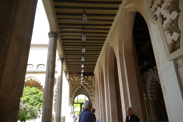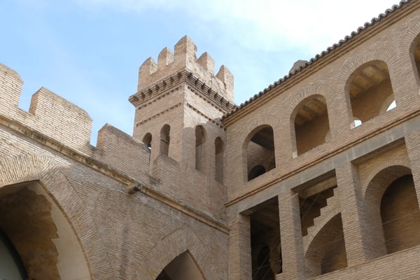 En accédant au monument vous trouverez les belles arcatures du palais islamique, qui contrastent avec l’imposante présence de la tour du Troubadour, mais également le palais médiéval des Rois d’Aragon.