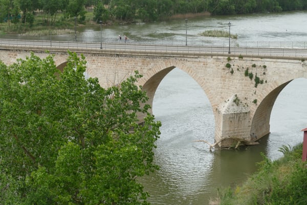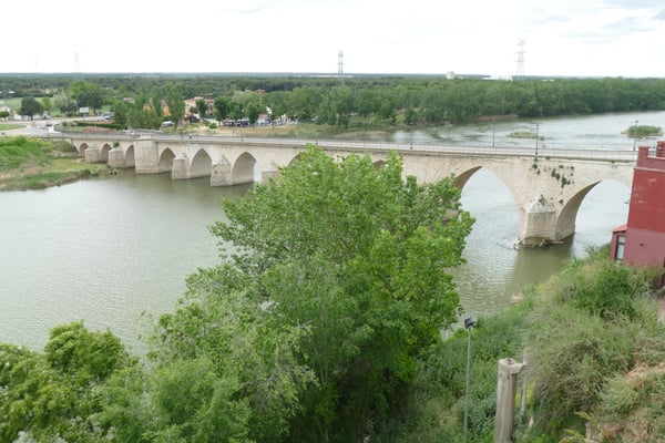 Il n’y a aucune référence à l’origine du pont actuel, pas de date, pas de traces, pas d’auteurs. La pointe de ses arcs indique son origine médiévale. C’est un grand ouvrage de maçonnerie en pierre de taille, il a dix yeux et entre les arcs, il a des coupe-eaux triangulaires. Au 10ème siècle, on sait qu’il y avait un pont, mais le bâtiment actuel trouve son origine dans un profond remodelage du 15ème siècle. La force du courant a forcé sa consolidation aux xvie et xviiie siècles. La ville et son pont étaient un passage obligé sur les routes qui reliaient le nord-ouest de la péninsule au centre, facilitant la traversée du large et puissant fleuve.