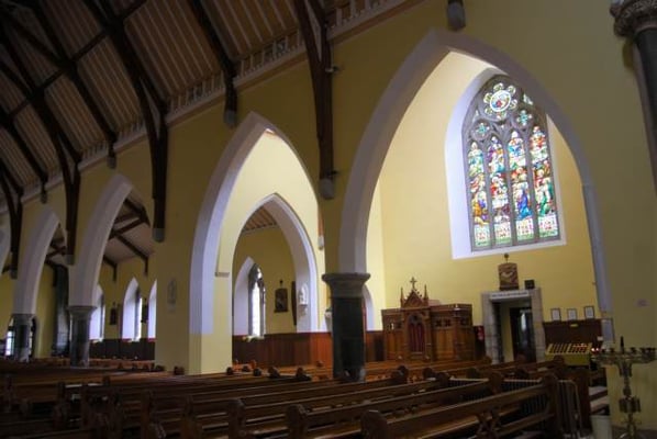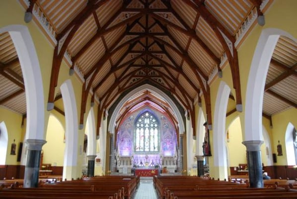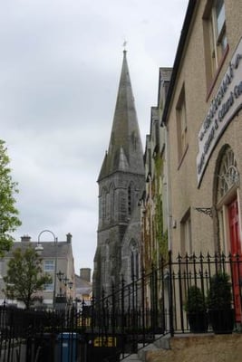 par la route N 69 imposante bourgade sur les rives de la FEALE, ruine d'un château du WV° siècle, le dernier à tomber lors de la rebellion contre la reine Elisabeth 1ere, place principale et alignement de maisons pittoresques. Plusieurs écrivains Irlandais vécurent ou vivent toujours ici, ce qui vaut à la ville la réputation d'être "The Literary and culturel capitalof Irland"