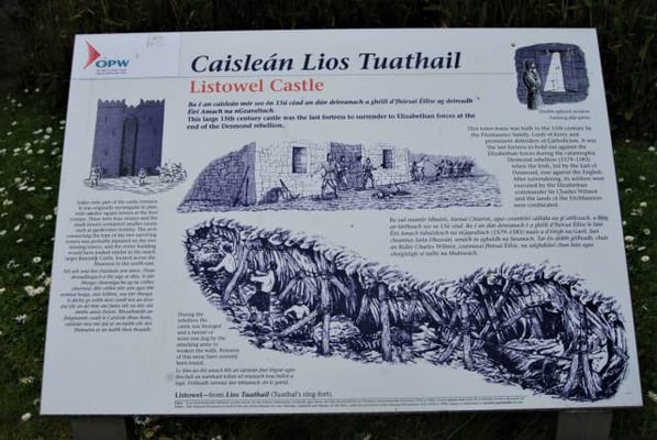 Le Château de Listowel est un des châteaux les plus massifs de tout le comté du Kerry. Bâti sur un flanc de colline, dans le centre même de la ville de Listowel (capitale du Kerry), le château s’élève sur pas moins de 15 mètres, et permet d’admirer les paysages environnants, ainsi que la River Feale, une rivière qui coule en contre-bas du fort.