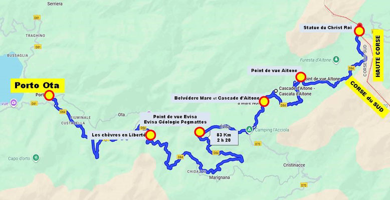 Imposante statue du Christ roi . Cette statue est monolithe gigantesque puisqu'elle mesure plus de 6 mètres et repose sur un socle de 9m50 non loin de la route au col de Vergio direction Evisa . Elle pèse 25 tonnes et est sculpté dans le granit rose? Réalisée pat l'artiste noël BONARDI en 1984 . Sur une plaque incrustée nous pouvons lire ce message de paix "comme je vous aimé , aimez vous les uns les autres ".C 'est l'une des plus grande statue de Corse .