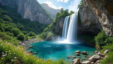 Le Voile de la Mariée est une superbe cascade haute de 70 mètres, située près du village de Bocognano (40 km d’Ajaccio, 40 mn).