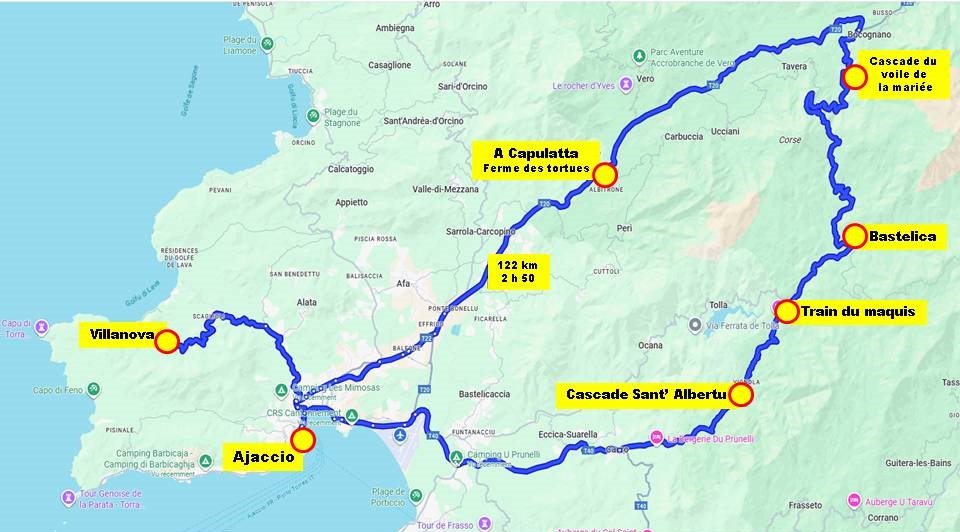 Départ : En venant d’Ajaccio, au rond point de Bocognano prendre la 1ère route à droite. Au bout de 5 mn dans un virage, le départ est signalé par un panneau A piscia di a sposa.