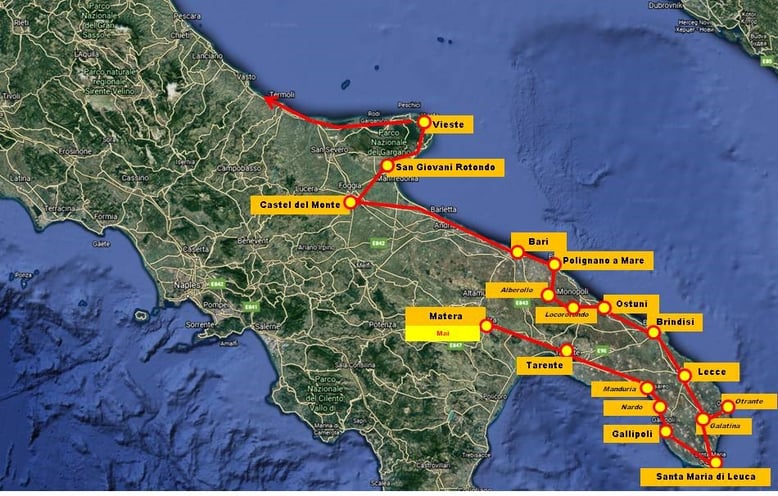 Pendant votre périple, vous vous arrêterez dans des villes avec un remarquable patrimoine artistique, mais aussi dans de petits villages de pêcheurs pittoresques et vous aurez l’occasion de faire un plongeon dans la mer Adriatique ou une randonnée à travers les beaux paysages apuliens. Vous aurez le temps de découvrir toute la beauté des Pouilles et je parie que vous en tomberez amoureux !