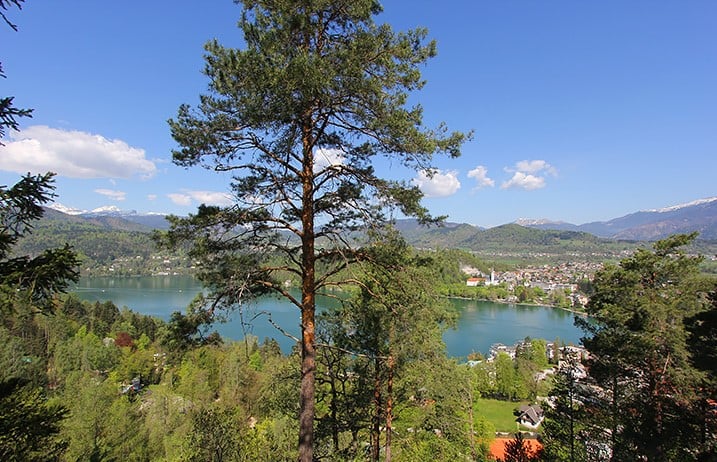 Le sentier forestier jusqu’au premier point de vue Mala Osojnica (685 m) est escarpé mais pas particulièrement difficile. Certains passages sont assez raides et il faut s’aider de cordes (ne venez pas en tong) mais les 45 minutes d’ascension valent vraiment la peine. En haut la vue est à couper le souffle avec l’ile posée au milieu du lac et les montagnes dont les sommets sont encore recouverts de neige.
