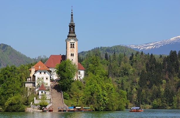 La minuscule île de Bled posé sur le lac et coiffé de l’adorable église de l’Assomption rajoute au paysage de carte postale. Pour l’anecdote c’est la seule île de Slovénie. Si vous décidez d’aller y poser un pied, il vous en coutera 14 € pour la traversée en pletna (sorte de gondole maniée à deux rames).