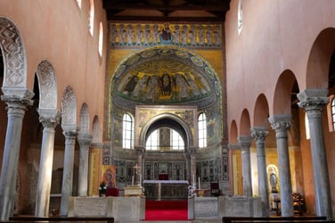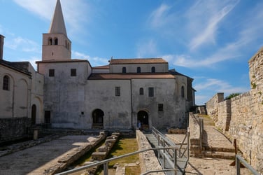 Il est possible de monter les 300 marches du campanile pour découvrir au sommet un panorama à 360° sur Porec. Sur le site archéologique à l’extérieur ont été mis à jour de superbes sols en mosaïque. Pour compléter la visite un musée expose des objets religieux et divers objets d’art chrétien primitif, byzantin et médiéval.