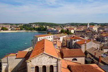 Toutes les choses à voir et à faire à Porec se situent dans la vieille ville construite sur une péninsule par les Romains au IIe siècle avant J.-C. Ceux-ci ont laissé en héritage un plan de la ville construit en parcelles rectangulaires qui contraste avec le plan circulaire de sa voisine Rovinj.