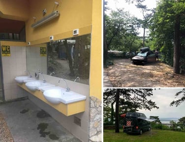 Trieste - Area Camper Von Bruck - Vidange eau noir et et grise, approvisionnement en eau avec 3/4 parking gratuit pour 50 véhicules, certains couverts, limitée à 72 heures, l'éclairage, le service de bus pour le centre exploité par Adriaclub Italie.