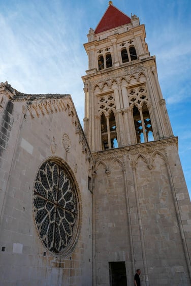 Monument le plus important de Trogir, la cathédrale Saint-Laurent (Katedrala Svetog Lovre) a été construite entre 1213 et le XVe siècle. On reconnait aisément l’influence vénitienne dans le style architectural, surtout avec ce campanile que l’on retrouve sur de nombreuses églises de la côte Adriatique (Rovinj en est le plus bel exemple). L’intérieur de l’édifice, sobre et étroit, est composée de 3 nefs. La cathédrale Saint-Laurent de Trogir mélange le style roman, surtout représenté à l’extérieur, et le gothique caractérisé par l’intérieur de la voute et le campanile.