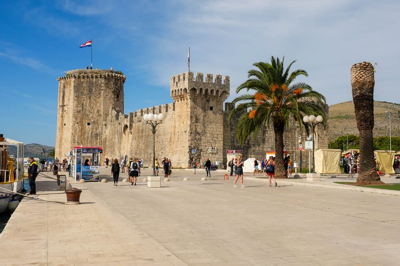 Comme dans toutes les villes croates du littoral, on retrouve à Trogir une agréable promenade en bord de mer. Entièrement piétonne, cette promenade bordée de palmiers est un lieu agréable pour se balader, prendre un verre en terrasse ou manger dans l’un des restaurants installés face aux bateaux. C’est aussi ici que vous trouverez de nombreux stands proposant des excursions en croisière au départ de Trogir (côté forteresse).