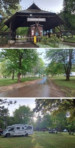 Possibilité de bivouaquer pour la nuit sur le parking du restaurant Babic. C'est écrit sur un panneau "kamping parking". Nous avons demandé à une responsable sans avoir lu ce panneau et elle nous a gentiment dit que nous pouvions nous garer pour la nuit et que c'est gratuit. La nuit a été assez calme bien que près de la route. "très bel endroit ! près des lacs, nuit gratuite et bon restaurant !!"