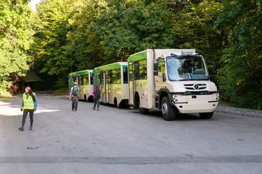 Les itinéraires dans le parc sont bien fléchés, des panneaux indiquent le sentier à suivre avec les lettres des différents circuits. Mais avant de pouvoir marcher sur les passerelles des lacs supérieurs, nous devons rejoindre le train panoramique à la station St2 à 10 min de marche du parking. Ils appellent ça un train mais c’est plutôt un bus qui a la forme d’un train. Après 10 min de trajet nous arrivons à la station St3 qui marque le début de l’itinéraire des lacs supé