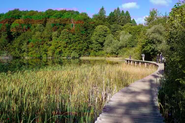 Quelle est la différence entre les circuits C et H ? Simplement le point de départ, l’itinéraire autour des lacs est le même. Le circuit C de 8 km (pastille verte) part de l’entrée n°1 alors que le circuit H de 8,9 km (pastille orange) est au départ de l’entrée n°2.