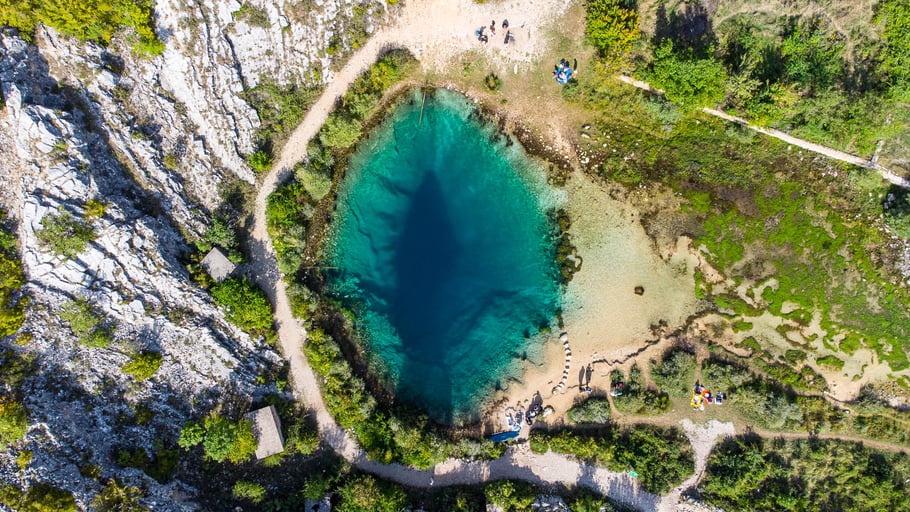 C’est à la frontière entre la Bosnie et la Croatie que la rivière Cetina prend sa source à 385 m d’altitude. Si en temps normal cela serait passé complètement inaperçu, la forme et la couleur de cette source en ont fait un spot en vogue sur Instagram récemment (surtout les photos prises par drone). Il n’en fallut pas plus pour que le site soit aménagé et que les touristes commencent à venir voir le trou bleu de Cetina. Mais pour s’y rendre il faudra faire un détour lors de votre road trip en Croatie, la source de la rivière Cetina est éloignée des itinéraires classiques.