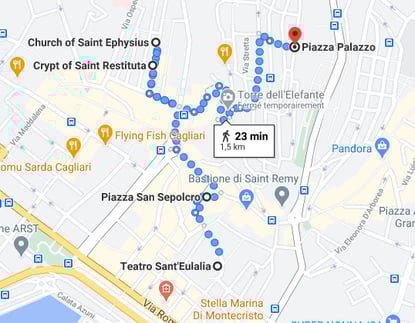 Le plus grand itinéraire archéologique urbain de la Sardaigne se développe dans le quartier historique de la Marina, c'est-à-dire la zone archéologique de Sant'Eulalia, qui est entrée par la cour du cinéma Sant'Eulalia.