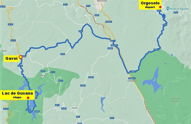 Le lac de Gusana, creusé entre 1959 et 1961 sur le territoire de Gavoi, dans la Barbagia de Ollolai, interrompt le rio Gusana entre les montagnes Littederone et Nodu Nos Arcos. Ce lac, qui s'étend donc au pied du haut-plateau granitique de Fonni, s'inscrit parfaitement dans le paysage environnant . les rouvraies recouvrant les reliefs qui l'entourent lui donnent son aspect caractéristique.