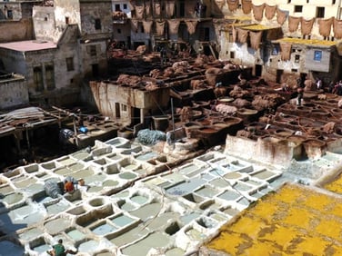 S’il y a bien un lieu qu’il ne faut pas manquer dans votre visite de la médina de Fès, c’est la tannerie Chouara, la plus intéressante des 3 tanneries de Fès et la plus ancienne (elle date du moyen âge). Pour visiter la tannerie, il y a 2 choses à faire : aller au cœur des bassins de tannage et prendre de la hauteur sur la tannerie.