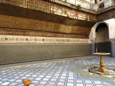 La visite de Fès se poursuit à travers la médina dans une deuxième médersa : Attarine. Plus ancienne que la médérsa Bou Inania, mais plus petite, la médersa Attarine est également très bien entretenue. Les murs revêtus de mosaïques, d’écritures et de plâtre sculpté sont magnifiques. La médersa Attarine se trouve au cœur de la médina juste à côté de la mosquée et université Qaraouiyine. La médersa Attarine est ouverte au public tous les jours de 8h à 17h et son entrée coûte 10 MAD (0.9€).