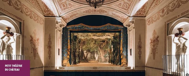 Nouveau propriétaire du château, Talleyrand décide d’ajouter à sa demeure un atout de choix : une salle de spectacle. Certainement encouragé par Napoléon, soucieux de distraire les Princes d’Espagne alors en captivité, un petit théâtre voit le jour à l’extérieur de l’enceinte principale. Ce petit théâtre, unique en Val de Loire, reste le témoignage le plus précieux d’une salle de spectacle du 1er Empire, conservé avec ses 54 décors d’époque ! La splendeur du fond de scène, les peintures des murs et du plafond ont tout gardé de leur effet.